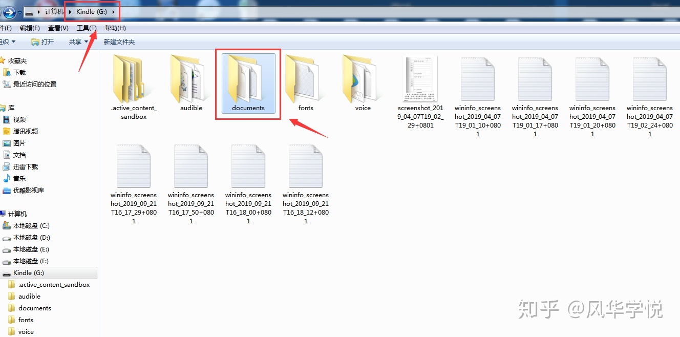 然后,打开Kindle磁盘(记得要开启kindle,并且解锁密码,不然是连不上电脑的),打开后可以看到一个名为Documents的文件夹。将下载在电脑上的电子书文件拷贝进这个文件夹中。